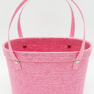 Сумочка плетеная из бумажной лозы, верх 23*13 см, низ 20*9 см, высота 14 см, розовый