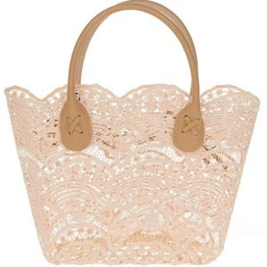 Корзина плетеная “Кружево” (ткань), 21x12xH19 см, (21см x 12см, H-19см, Кремовый)
