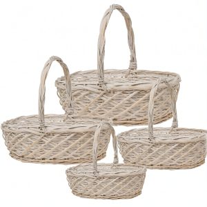 Корзина плетеная (ива), 56x45xH18/47 см – 31x24xH13/32 см, набор (4 шт), (Белый)