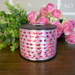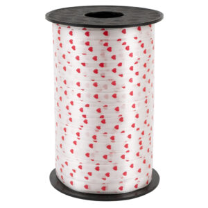 Лента полипропиленовая (0,5 см*250 м) Красные сердца на белом, 1 шт.
