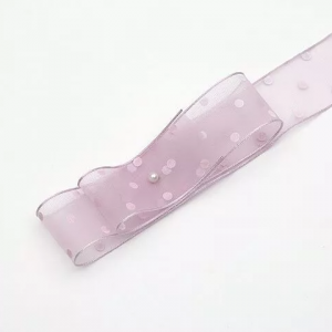 Лента “ГОРОШЕК” полиэстр 25мм*30ярд, пудра/белый