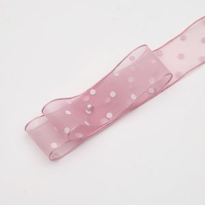 Лента “ГОРОШЕК” полиэстр 25мм*30ярд, розовый/белый