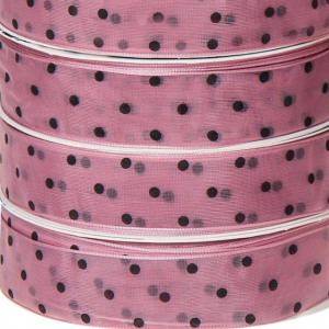 Лента “ГОРОШЕК” полиэстр 25мм*30ярд, чайная роза/черный