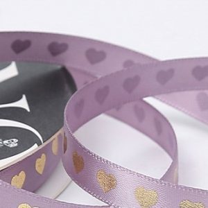 Лента декоративная “Золотые сердца”, полиэстер, 10 мм х 40 ярд., сиреневый