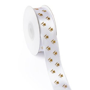 Лента атласная “Элит”, на катушке (картон), односторонняя, 38 мм х 25 ярд, бело-зеленый