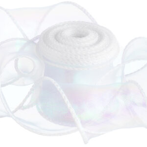 Лента декоративная (4 см*9,14 м) Органза с леской, Белый, Хамелеон, 1 шт.