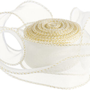 Лента декоративная (4 см*9,14 м) Органза с леской, Золотая кайма, Кремовый, 1 шт.