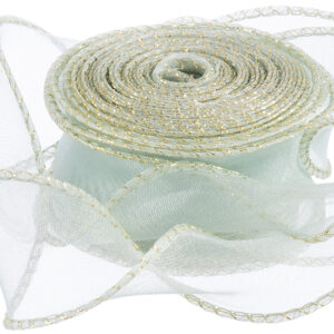 Лента декоративная (4 см*9,14 м) Органза с леской, Золотая кайма, Мятный, 1 шт.