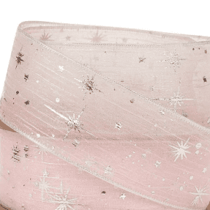 Лента органза “Звезды”, 40 ммx10 ярд, розовый