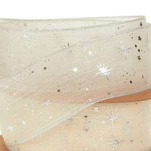 Лента органза “Звезды”, 40 ммx10 ярд, кремовый