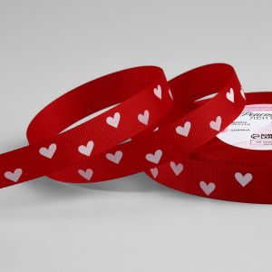 Лента репсовая «Сердечки», 15 мм, 23 ± 1 м, цвет красный/белый №026
