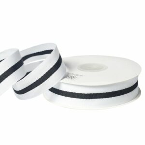 Лента хлопковая “Полоса”, 25mmx25yards, цв.белый с черным