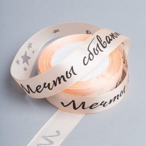 Лента атласная 25мм х 25 ярд надпись Мечты сбываются светло розовый