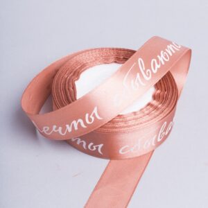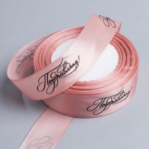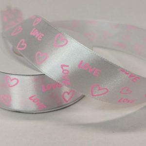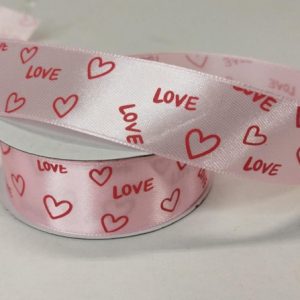 Лента атласная с принтом “Love”, 25mmх25yards, цв. светло-розовый с винным