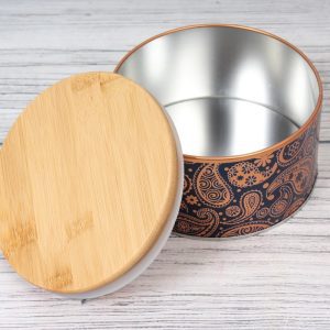 Декоративная металлическая коробка “Узор пейсли” D13.5XH7.5 см, розовый/золотой