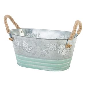 Декоративное овальное кашпо 19.5X11.5XH9 см. серо-голубой. металл. 9414