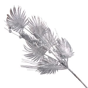 Декоративные ветка с шариками, 60см, цв. Серебро