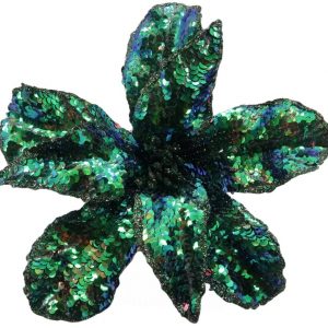 Декоративный цветок Магнолия с пайетками D20 см, 1 шт., зеленый