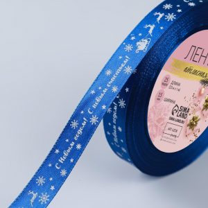 Лента атласная «С Новым годом», 15 мм, 23 ± 1 м, цвет синий №122