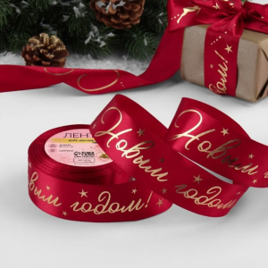 Лента атласная «С Новым годом!», 40 мм, 23±1 м, красная