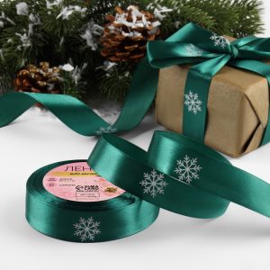 Лента атласная «Снежинки», 25 мм, 23±1 м, зелёная