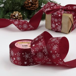 Лента атласная «Снежинки», 40 мм, 23±1 м, бордовая