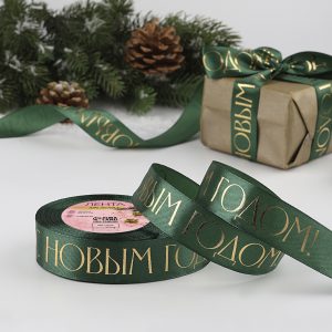 Лента атласная с тиснением «С Новым годом», 25 мм, 23±1 м, тёмно-зелёный