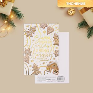 Открытка на акварельном картоне «Имбирное печенье», тиснение, 10 х 15 см 1ШТ