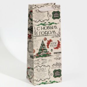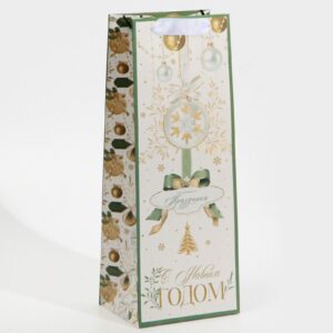 Пакет новогодний подарочный под бутылку «С Новым годом», 13×35×10 см