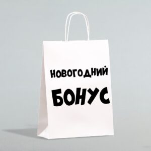 Пакет подарочный с приколами, крафт «Новогодний бонус», белый, 24 х 10,5 х 32 см