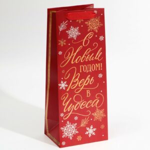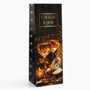 Пакет подарочный под бутылку новогодний «С Новым годом», 13×35×10 см