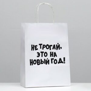 Пакет подарочный с приколами, крафт «Не трогай, это на Новый Год», белый, 24 х 10,5 х 32 см