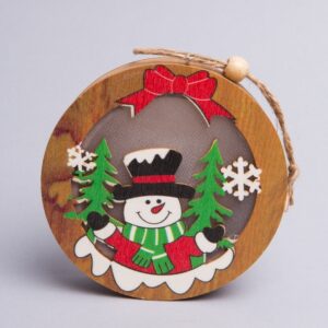 Подвеска деревянная светодиодная 11х8,5х3см GD-3A шар со снеговиком