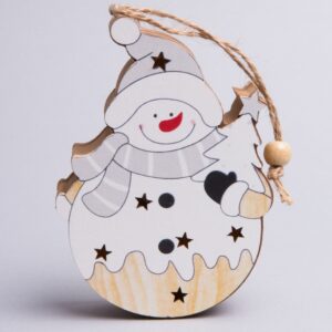 Подвеска деревянная светодиодная 10х7х2см GD-12С снеговик