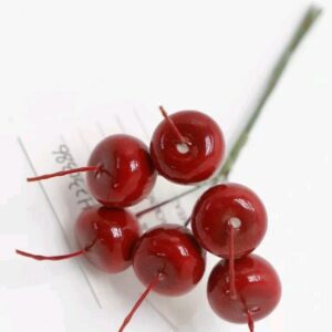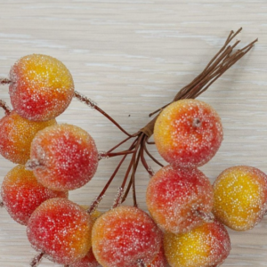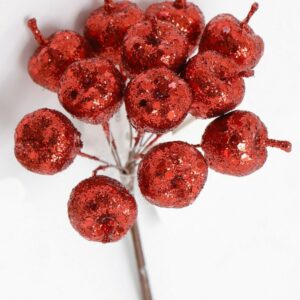 Связка яблок на проволоке с глиттером, 12 шт, 16 см, красный
