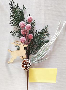 Ветка с заснеженными ягодами, шишкой и оленем, 39 см, 1шт
