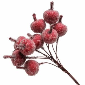 Ветка с засахаренными ягодами шиповника на проволоке из 10 шт., цв. красный