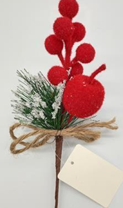 Ветка с ягодами искусственная (пластик), H19 см, красный 6203