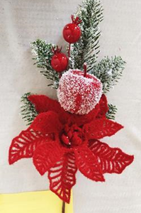 Ветка с красным цветком и заснеженным яблоком и ягодами, 32 см