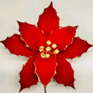 Ветка цветок пуансеттии с золотой окантовкой, диаметр цветка – 26 см, 17 см