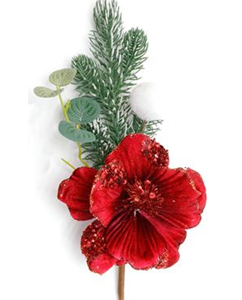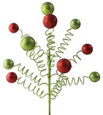 Декоративная ветка с шариками, 34 см, зеленый/красный, 1 шт.