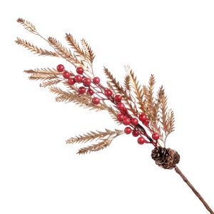 Декоративные ветка с красными ягодами, 75см, цв. Золото