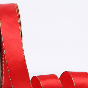 Лента декоративная “Золотая кайма”, полиэстер, 25 мм х 40 ярд., красный