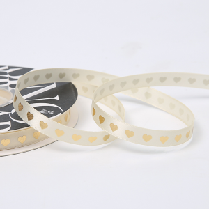 Лента декоративная “Золотые сердца”, полиэстер, 10 мм х 40 ярд., кремовый