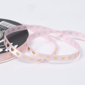 Лента декоративная “Золотые сердца”, полиэстер, 10 мм х 40 ярд., светло-розовый