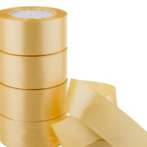 Лента декоративная односторонняя YY (атлас), 40 ммx25 ярд, светло-желтый 2411