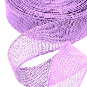 Лента Лен искусственный с проволокой 4см*25ярд Светло-сиреневый 1/60