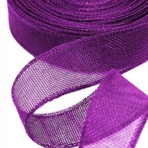 Лента Лен искусственный с проволокой 4см*25ярд Темно-фиолетовый 1/60