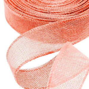 Лента Лен искусственный с проволокой 4см*25ярд Бледно-персиковый 1/60