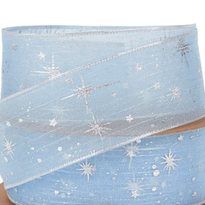 Лента органза “Звезды”, 40 ммx10 ярд, голубой